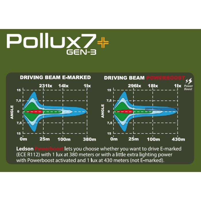 Con el Pollux7+ Generación 3, mejora tu experiencia de conducción con la última tecnología de Ledson en una luz auxiliar repleta de funciones. Su tamaño de 18 cm (7″) es especialmente adecuado para coches o vehículos pequeños, ya que es ligeramente más pequeño que su hermano mayor, el Pollux9+, con su diámetro de 23 cm (aproximadamente 38 mm menor). Con 72 W de potencia y la innovadora función Powerboost controlada por pulsos, el Pollux7+ ofrece mayor flexibilidad y un brillo mejorado cuando más se necesita.